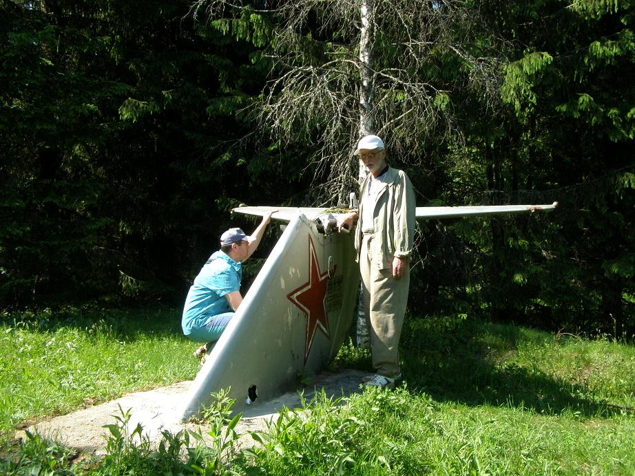МиГ-15. Стабилизатор такого самолёта, стоявшего ещё в конце 50-х гг на вооружении в громовском полку, использован в качеств памятника