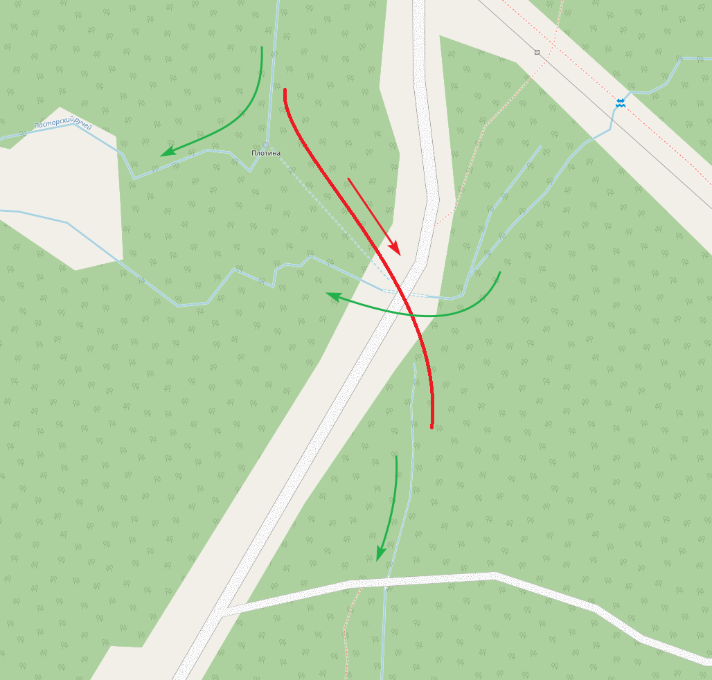 Ну извольте. Нынешнее положение вещей отражено на openstreetmap.org. Вот ссылка: https://osm.org/go/0zNmOumO0- Там и плотина обозначена. Пунктиром - старое русло от плотины до трубы под карьерной дорогой. Пасторский из озера уходит в Саменскую. Где начинается его нижняя часть так же видно на карте. Между верхней и нижней частью никакой связи нет.