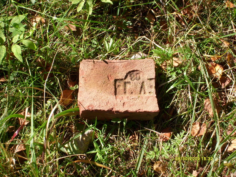 Еще один кирпич, найденный в мое последнее посещение взрывоопасной части Силотвора с маркировкой "Г.Л." (владелец кирпичного з-да граф Левашов).