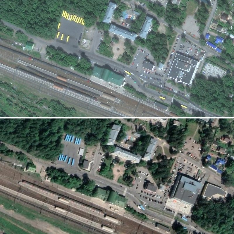 Напишу на тот случай, если нужно что-то посмотреть: снимки со спутника в Я. уже несколько лет не обновлялись. Это хорошо заметно по Зеленогорску: на верхнем фото от Я. все автобусы жёлтого цвета, это МАЗы и Драконы. Третий парк в массовом порядке их заменил на лазурные ЛиАЗы в октябре 2021 года (включая работающие на 494-м и 315-м). И на нижнем снимке от Г. все автобусы лазурные, так что там поактуальнее.