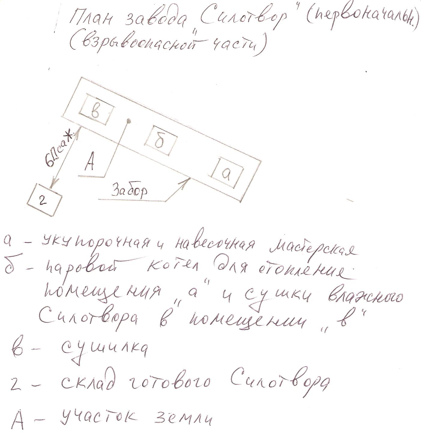 В качестве примера привожу два плана взрывоопасного участка завода Силотвор (до взрыва и после) -см. статью "Силотвор инженера Руктешеля".