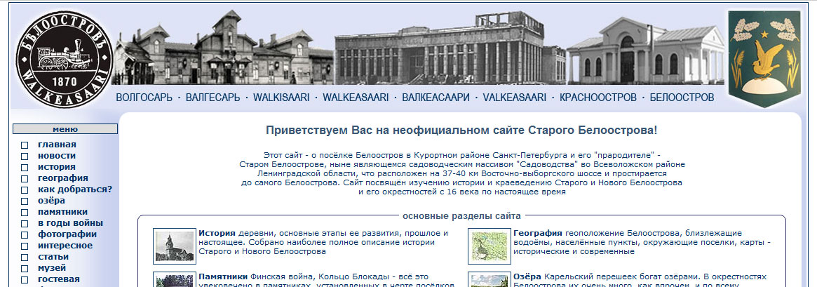 Разделы, существующие ныне в этом разделе Сайта, путают меня и посетителей своей непонятной привязкой то к Старому БО, то к Новому, то к каким-то непонятным "Окрестностям"... Опять же, подраздел "Исторические фото" слишком сумбурен и включает в себя максимум фотографий церквей и всего лишь несколько видов БО и окрестных деревень. Посему есть предложение переделать подразделы следующим образом:
