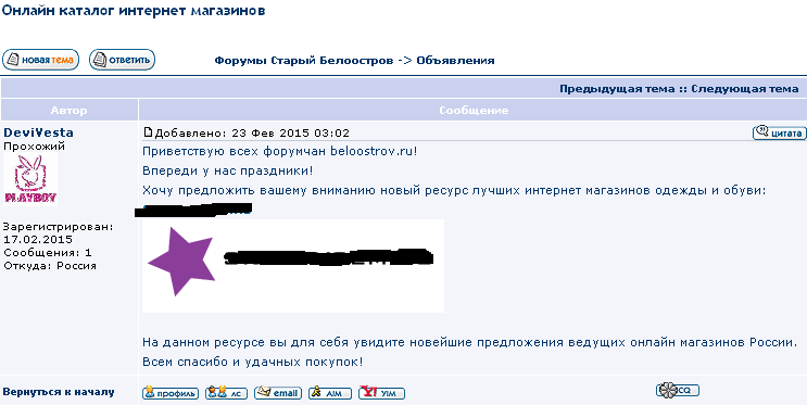 Как многие, вероятно, заметили, в последние дни вновь активизировались атаки спамеров. Приходится удалять по 40-50 сообщений за раз. В чём проблема - не знаю, к сожалению. Возможно, эта версия движка форума доживает последние дни, и залатать дыры в защите никак нельзя? Тогда придётся всё-таки переходить на более свежую, защищённую версию. Помнится, я уже копал её, но не осилил визуальное оформление под стиль сайта, ибо в новой версии все шаблоны построены иначе. Ну что ж, если нападения спамеров не прекратятся - придётся засесть за изучение новых шаблонов...