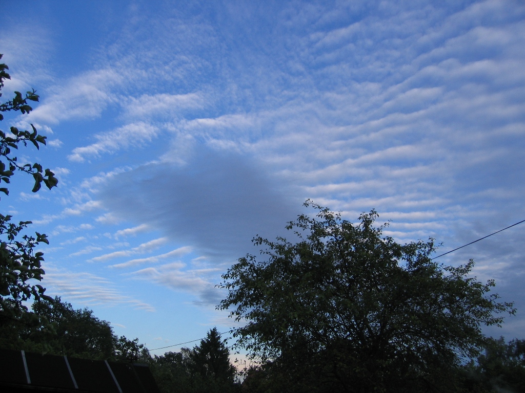 В эту субботу (18.07.2009) после полудня небо над Старым Белоостровом буквально представляло собой учебное пособие по географии для младших классов. Можно было наблюдать одновременно почти все классические типы облаков. Не было лишь кучево-дождевых, и это радовало