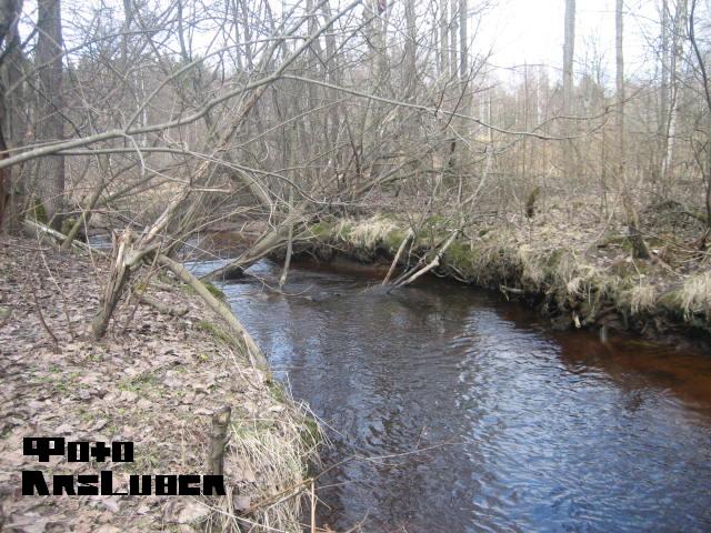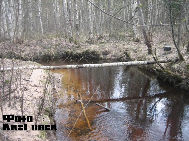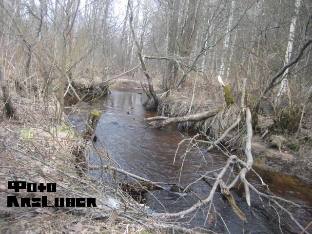 Вверх по течению от этого места ручей переходит в довольно большой разлив (пруд?)