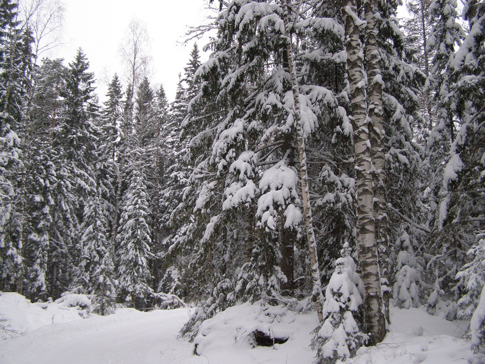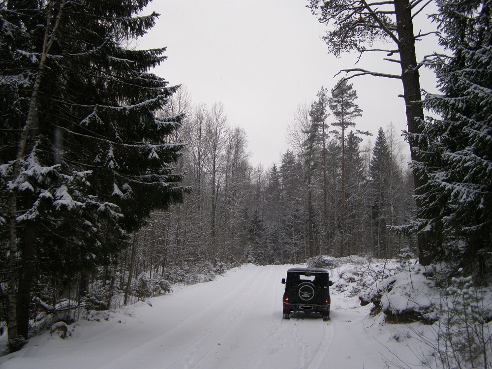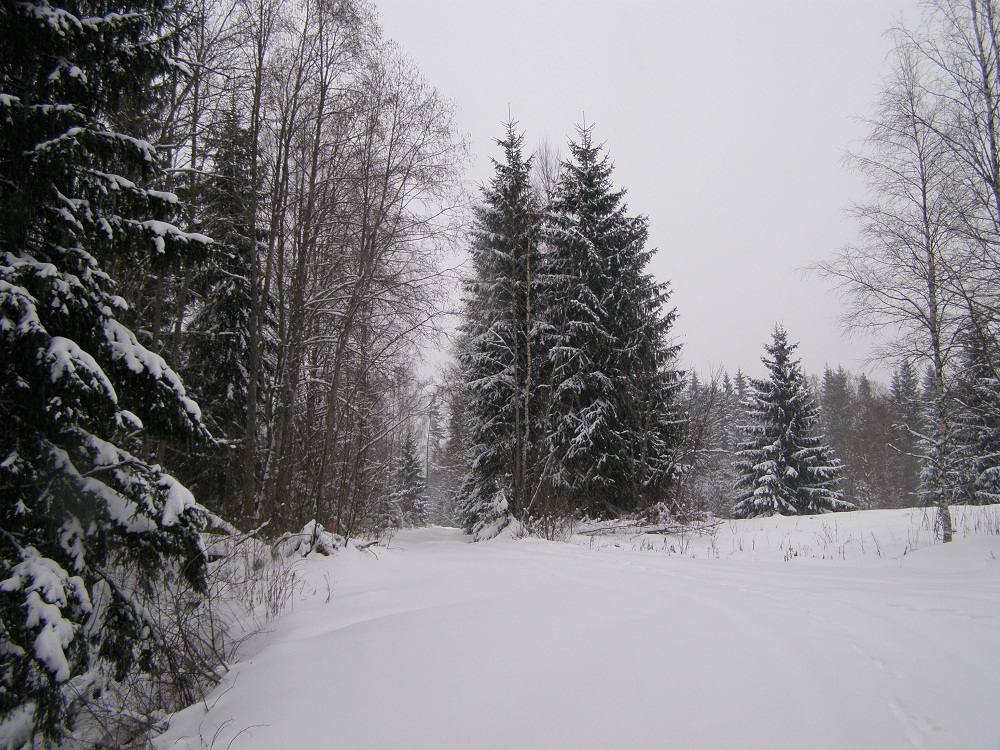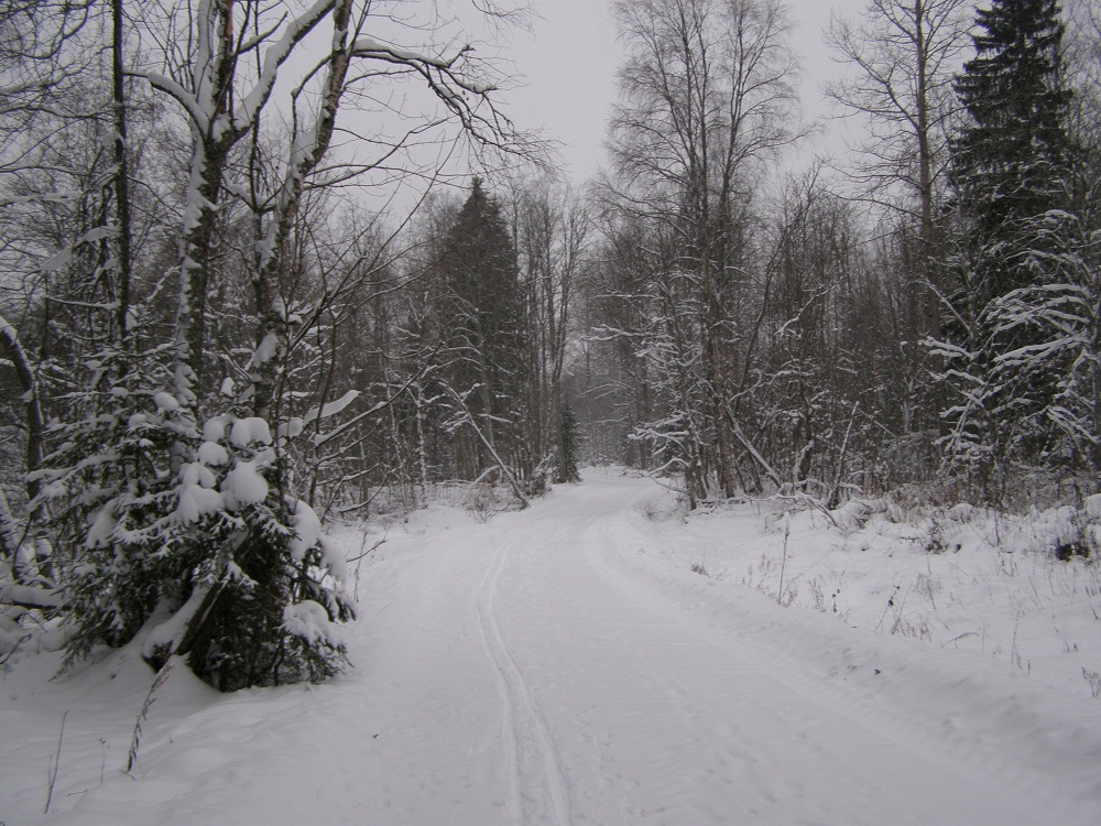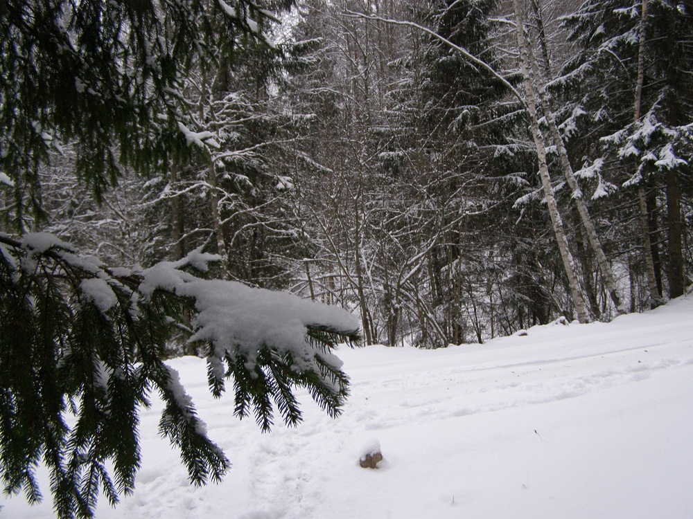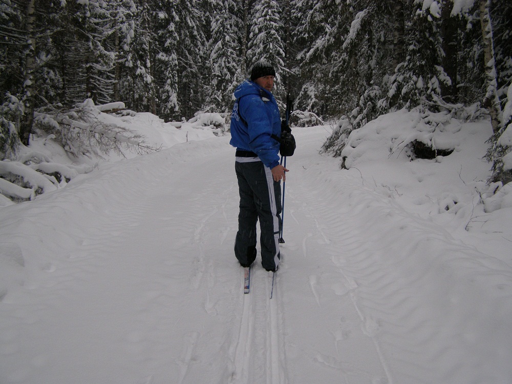 В прошлые выходные открыли лыжный сезон.Погода стояла просто классная-тепло и падал густой снежок при полном безветрии.Какой это был кайф,ребята!Короче-все на лыжи :!: Прокатились от Тонтери до памятника СУ-15.В лесу-множество звериных следов-лисьи,заячьи,и какие-то типа собачьих(может вольчьи?-хотя не очень большие)