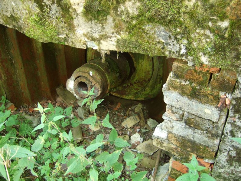 Артиллерийский дот находится в лесочке, к нему ведет дорога, перекрытая шлагбаумом. У шлагбаума устрашающая надпись, мол хенде хох и не баловать. Частная территория, проход только в сопровождении ( кто только сопровождать будет непонятно. Телефона и КПП нет, так что куда звонить, чтобы сопровождение заказать – неизвестно). В доте сохранилось орудие со спиленным стволом. Теперь на частной территории никто не допилит ( кроме, м.б., самих этих частников)