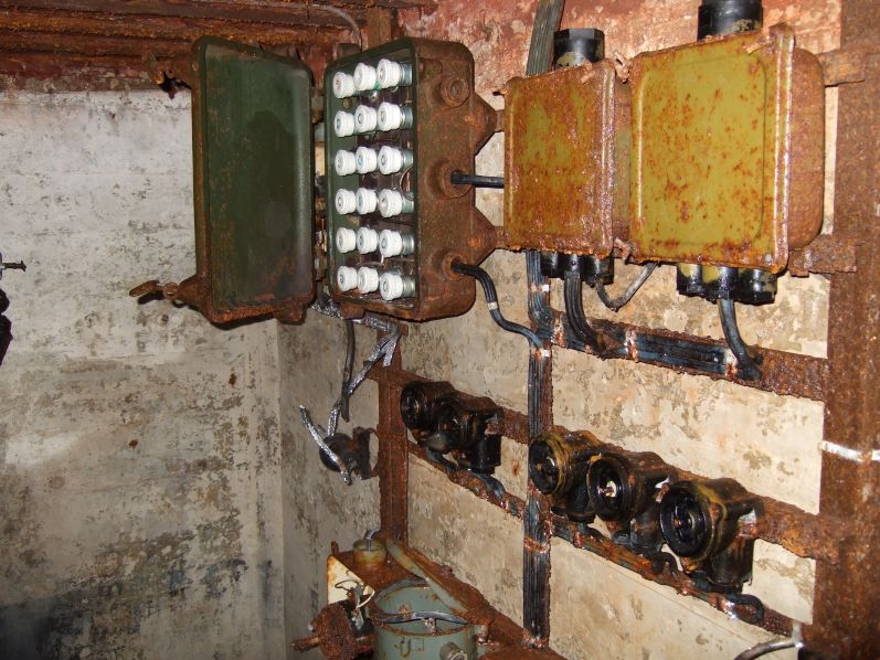 Я так понял, что в обследованном ДОТе осветительная сеть - 220В, 24В - подсветка лимбов приборов и пр. И еще - на фото, где Вы у пулеметного станка, по моему присутствует влагозащищенная трехфазная розетка. Черная, с крышкой на цепочке, видимо для питания мощных электроприборов. Я когда-то запитывал через такую розетку взрывобезопасный электродвигатель. Купил ее с рук, на рынке.