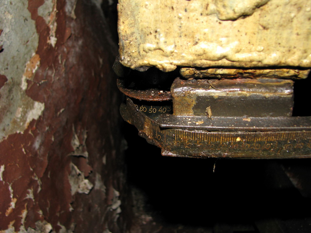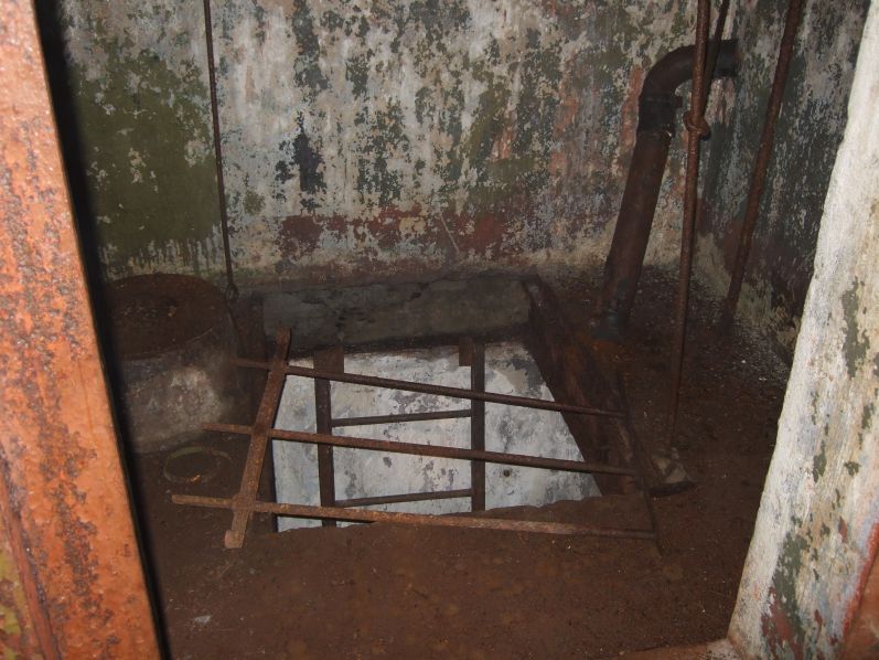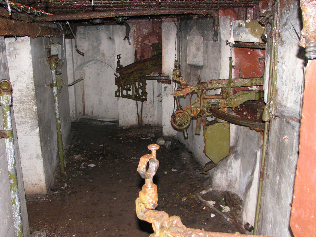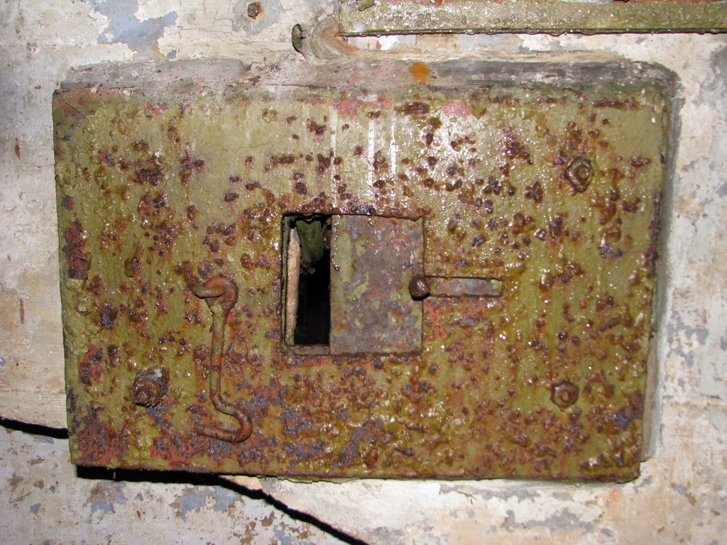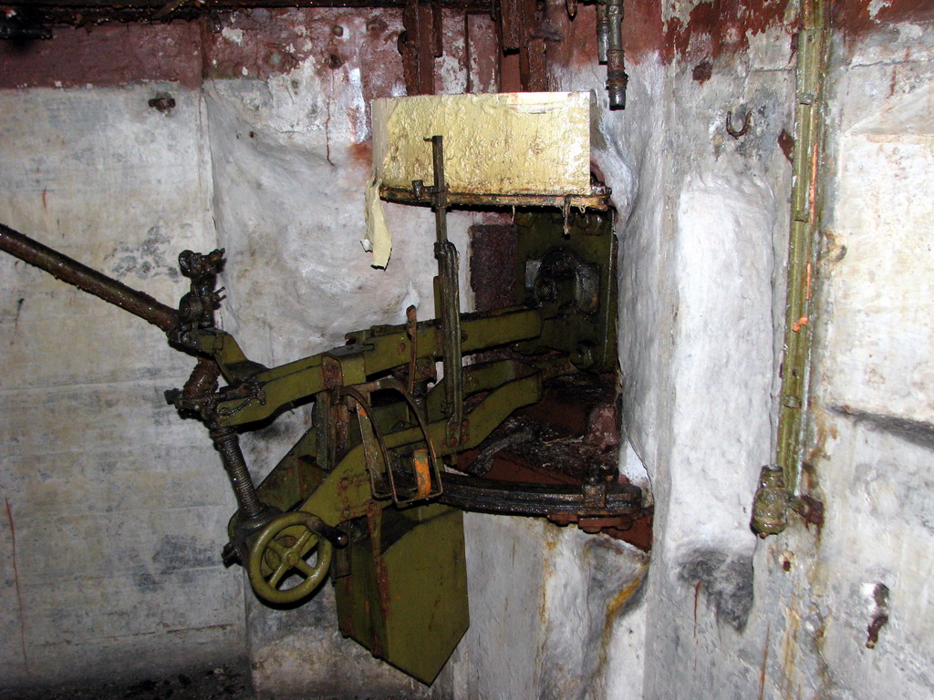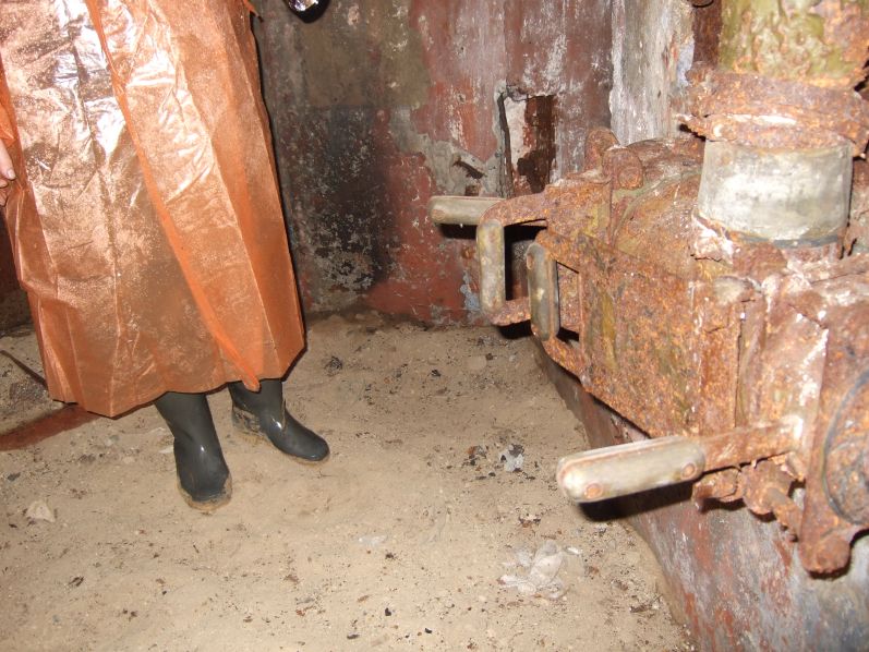 Первый дот был найден в конце некоей канавы. Ее длина метров 300. Стенки начала канавы в свое время были заделаны бревнами. Прямо как Новая Голландия во времена Петра 1. Подступы к доту перерыты окопами. Большего числа окопов нигде не видел. Ну, очень много. Дот четырехамбразурный пулеметный. Два этажа. Как и везде сильно зарос лесом. Особенность дота в том, что командирский перископ находится прямо при входе, а не в отдельном командирском помещении в глубине дота. Люк на нижний уровень и рядом перископ. На нижнем уровне когда-то стоял дизелек. Остатки блока цилиндров лежат на поверхности недалеко. На плите, где был дизель-генератор остался лом. Им пользовались при выламывании металлических частей. Дороги близко нет, и как все это перли на горбу, чтобы сдать в металлолом? На нижнем уровне из интересного можно отметить самодельную выгородку, где вешались шинелки (сделана выгородка из досок, с дверью) и остатки оружейной пирамиды на 10 единиц оружия.