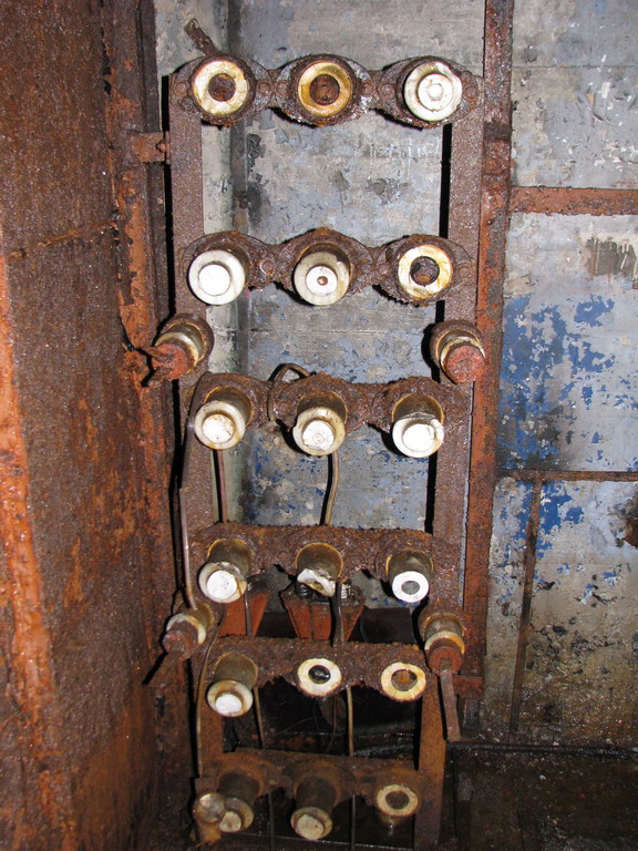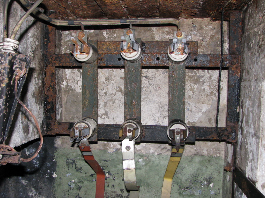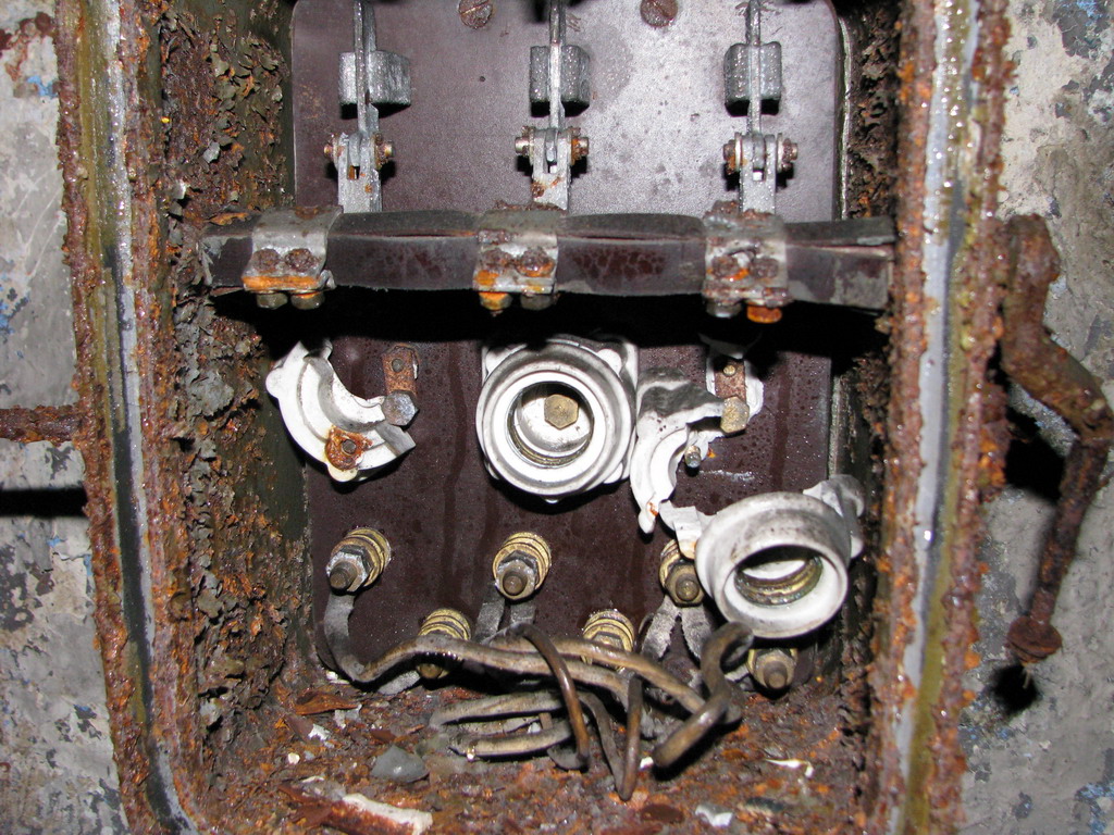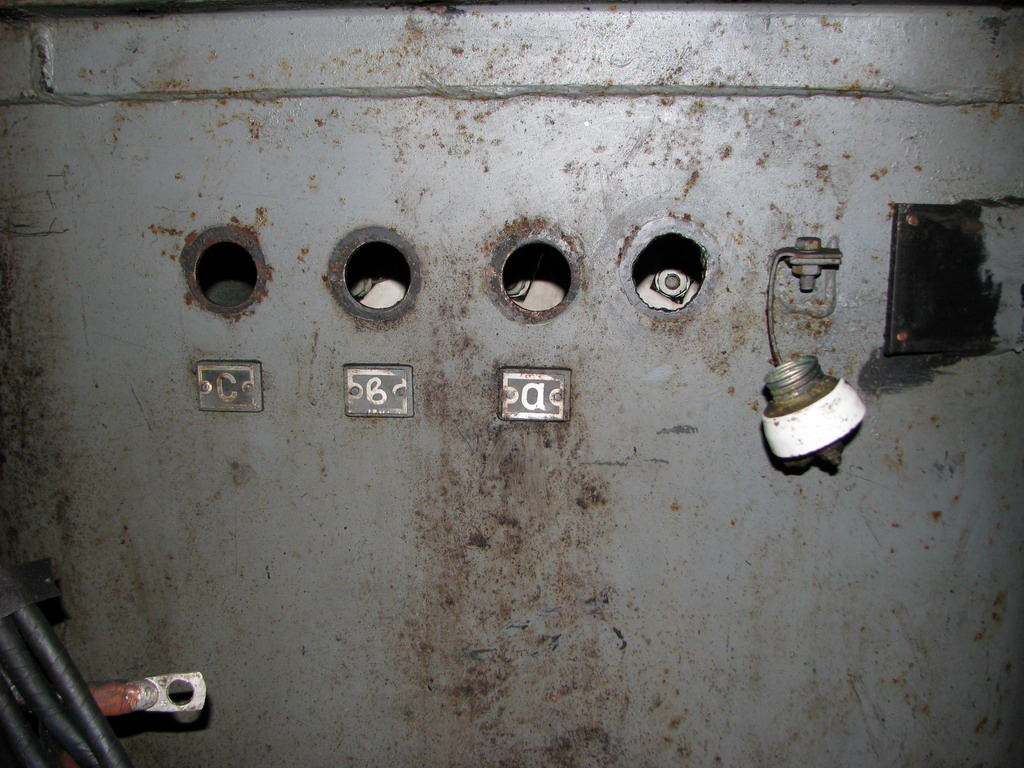 На втором - трехфазный токоввод с галетником, защищенный плавкими вставками с кварцевым песком (для "гашения дуги").
