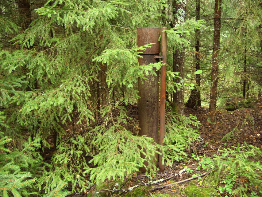 Дело все в том, что данная " труба для буровых скважин" находится на покрытии дота. Вряд ли там собирались добывать нефть. Диаметр ее сантиметров 15, толщина стенки около сантиметра ( чуть меньше)