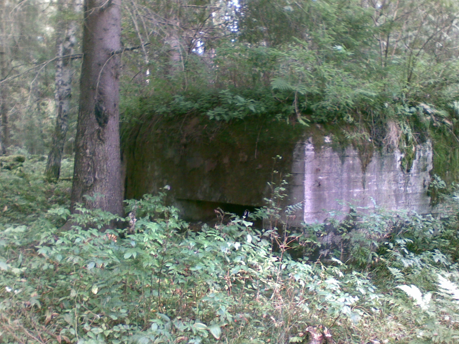 Трехамбразурный дот. Конечно, один этаж. Амбразуры смотрят классически на север, запад, юг. В основном каземате - южная, западная и ФВУ, в отдельном - северная. Отличается хорошим состоянием. Похоже до меня тут были только истинные краеведы. Готовый музей- только табличку повесить. Дот малоизвестный. Он наверно из тех, что "кауроведы" не рассекретят ни при каких условиях. Я к ним присоединяюсь. Скажу только, что находится .... в лесу. И это будет чистая правда. Просто так натолкнуться на него в этих дебрях практически невозможно, GPS в этом лесу сигналы не принимает, только на полянке у дота, где я и убедился, что нахожусь в требуемой точке. А если бы я ее не знал .....Было бы как в прошлый раз, когда не дошел 200м. Да и за 50м не увидел бы. Так что у него есть хорошие шансы и в будущем сохранить свою "целостность".