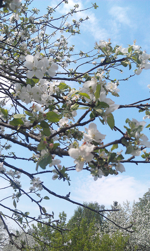 Яблони цвели в эти выходные повсеместно и великолепно! К сожалению, уже активно облетают. Так что, удалось запечатлеть частично облетевшие. Но все равно кругом - обилие не "зелени", а "белизны" 8)