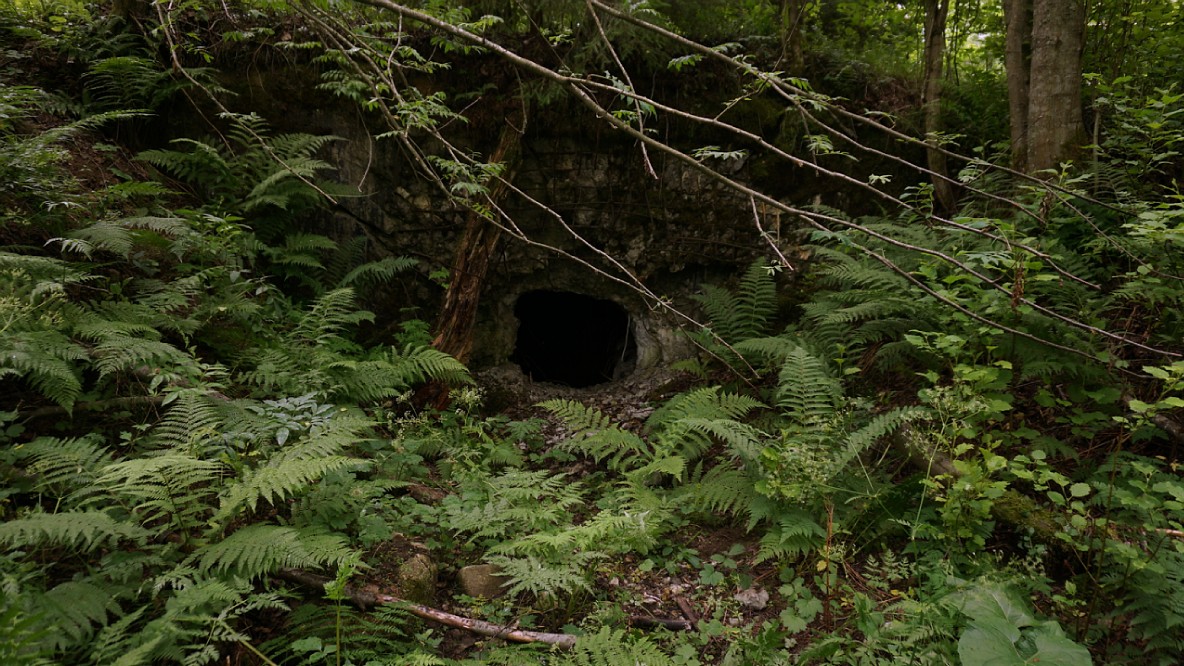 Амбразуры этого дота смотрят под углом градусов 90 друг к другу. Одна на практически чистый восток 8O , другая на чистый север :roll: . От викингов и татаро-монголов обороняться, что ли? К двери дота ведет бетонированный (даже не знаю, как обозвать) подход метров 7-8. Он зачем-то взорван. Плиты валяются в беспорядке и немного загромождают вход в дот. На уровне земли еще есть то ли амбразуры, то ли проломы в стене