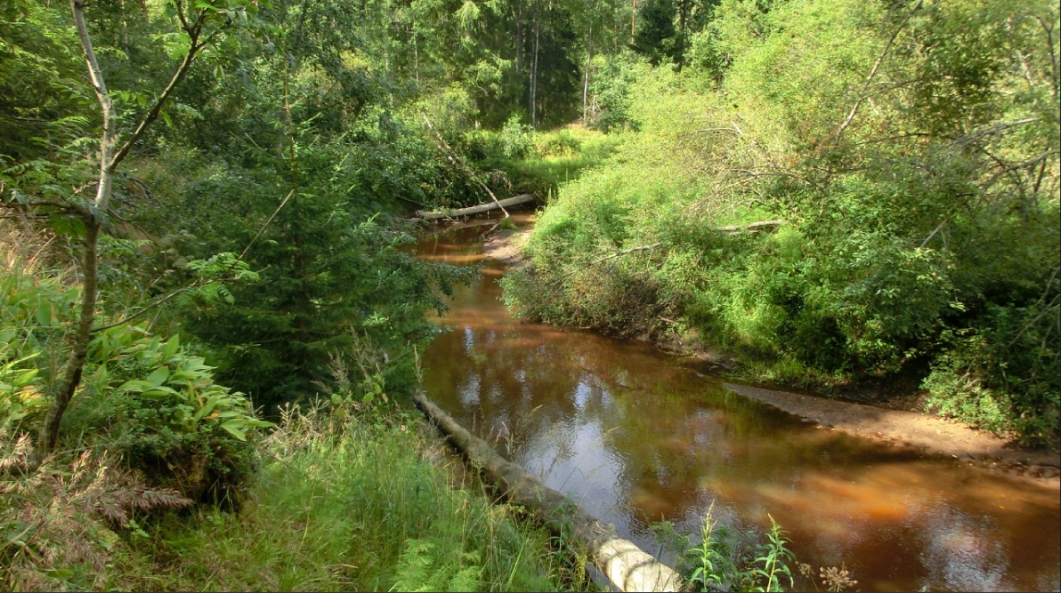 Обследовал всю штукатурку в верхних помещениях. Ничего из финских надписей не обнаружил. Самая ранняя помеченная временем надпись относится к 1949 году. Некий В.К.. Далее путь лежал к Сестре мимо недостроенной, вероятно, казармы. Справа от дороги на бугре наш довольно разветвленный траншеями опорный пункт. На финской схеме 18пд отмечен, вроде как, номером 15. Потом Сестра. Обрывистый берег, но если выйти дальше на мысок, то можно спуститься и помочить ноги