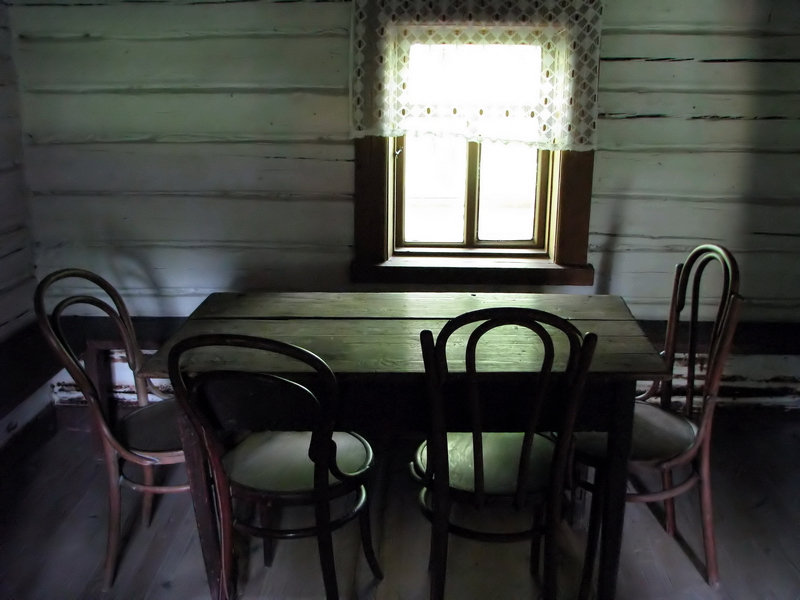 Две скучающие музейные работницы предложили посмотреть на интерьеры избушки Парвиайнена всего за 10 рублей с носа. Отказаться было невозможно. Внутри - низкие потолки и очень уютно. Дом оборудован современной пожарной сигнализацией. Пропитан чем-то, похожим на креозот. Грибок, говорят, завёлся. Поэтому пускают только в сухую погоду.