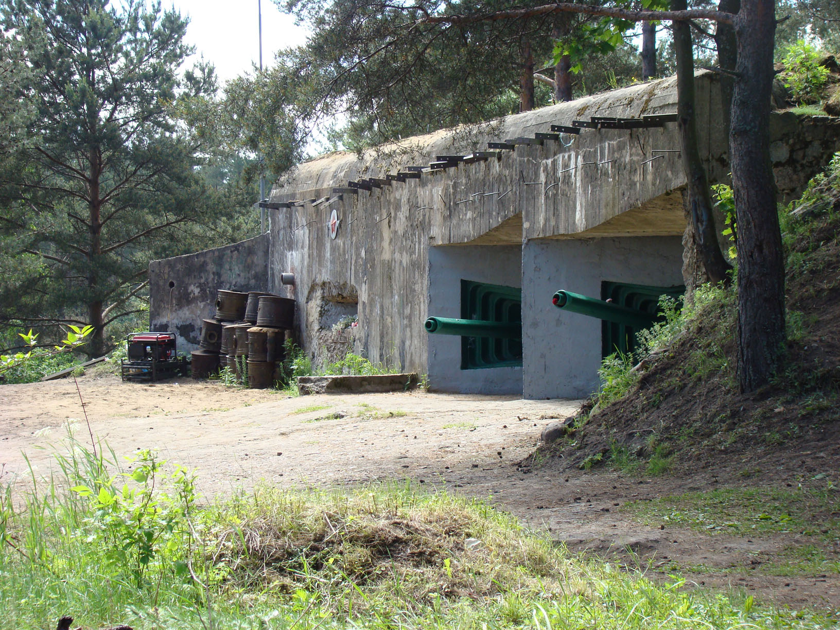 Что не понравилось: стена ДОТа, обращенная к болоту, покрашенная в непонятный серо-белый цвет и фильтры ФВУ, валяющиеся на улице, у болота.