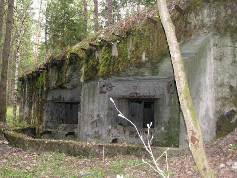 Какой-то из двух дотов на горе (37км): тот, что на фото или тот, что западнее (уже под домом), является НП (внутри не был, а на форумах НП называется то один, то другой). Может быть, поэтому и амбразуры часто расположены.