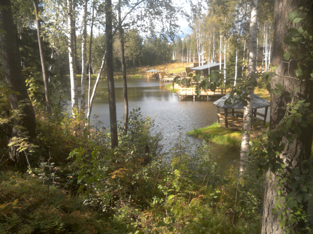 Нижнее и самое крупное озеро. Вероятно, то самое, из-за которого сыр-бор два года назад разгорелся. Один берег огорожен и застроен разными мостиками-причалами-террасами -беседками.