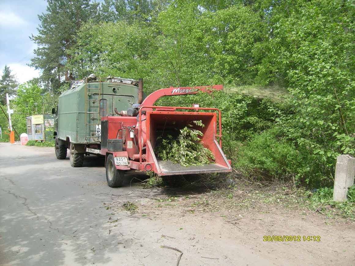 29 мая наблюдал как происходит утилизация частей спиленных деревьев в зоне трассы эл. передачи между трансформаторными будками, находящимися на Александровском шоссе и в ДСК Дюны.