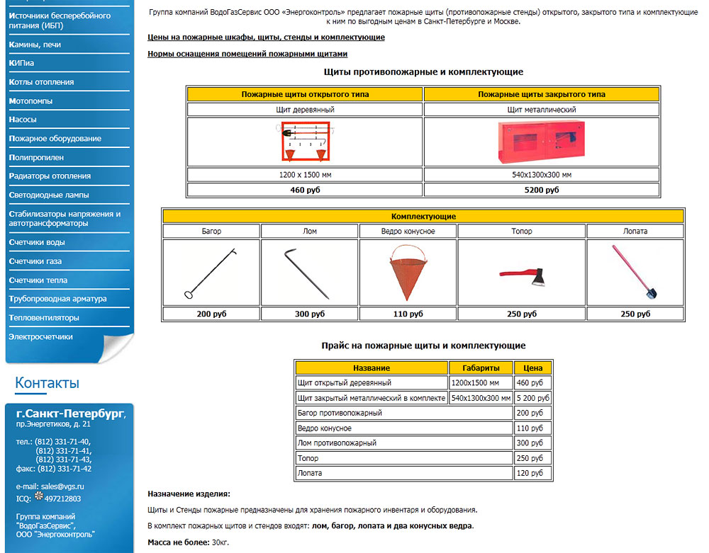 Пока для примера взято с сайта ВодоГазСервиса (адрес можно посмотреть в excel'евском прайсе)