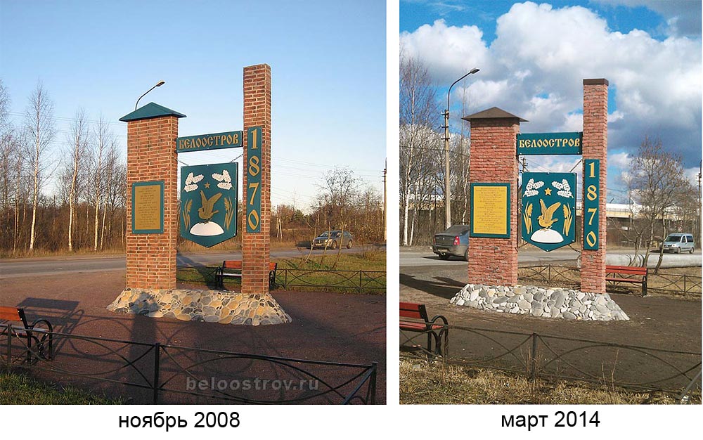 17 августа 2010 г. в светлое время суток (около 21-22 ч.) водитель (67 лет) "форд мондео" ехал со стороны Сестрорецка и "задумавшись" снес памятник малой формы истории Белоострова. Водитель вызвал эвакуатор и скрылся, не сообщив в ДПС о сносе памятника. Но в Белоострове нашлись свидетели, которые видели водителя и записали № машины. Также были сделаны фото аварии (и № машины).