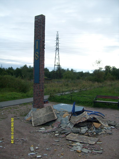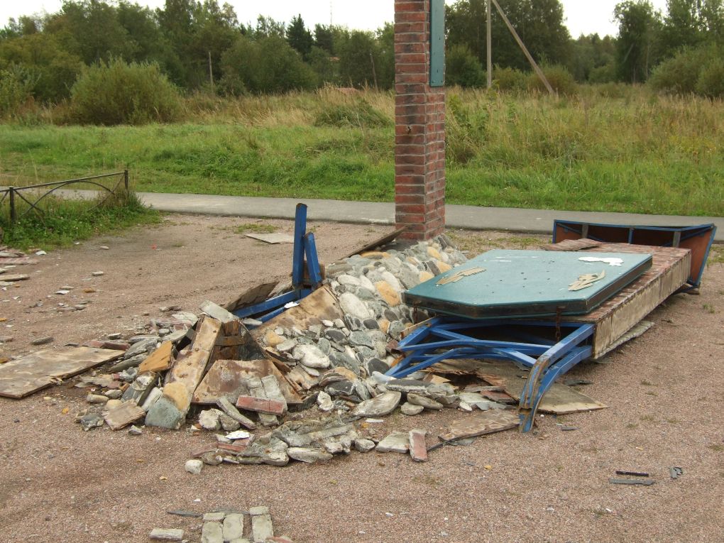 Около трех недель назад был разрушен, приблизительно на 90 процентов, памятник малой формы, посвященный истории Белоострова и, установленный по решению "сверху", как это ни парадоксально, на правом берегу Сестры (бывшей финской местности Раяйоки).