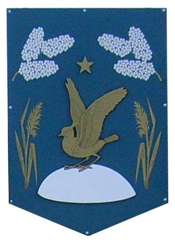 Что касается герба, то он мне нравится меньше, чем паровозная эмблема. Тем не менее, хотелось бы узнать, что символизирует птичка и на чем она сидит (в окружении камышей похоже на полувсплывшую морскую мину).
