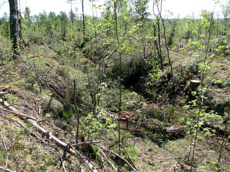 Ведь вырубки идут на тех местах, где наши добрые калеловцы в свое время уже однажды уничтожили всю экологию, вырубали леса, застраивали и распахивали земли. Я даже склонен думать, что калеловцы уничтожили лес на территории много больше, чем 500 * 800 м. Но как только человеческая деятельность там прекратилась, то все очень быстро заросло лесом, и теперь даже следы той деревни обнаруживаются с трудом.