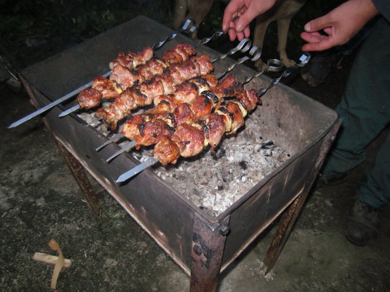 Быстрая закуска: Берем ветчину, та которая полосками в вакумной упаковке, заворачиваем её в лаваш, получаются рулетики. Кладем на решетку и на мангал. Запекаем на углях 15-20 минут, до обжаристой лавашной корочки и все снимай и отправляй в рот.