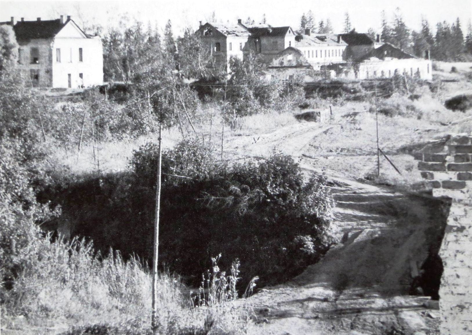 Фотография из книги "Jatkosodan Historia". Александровка, здания бывшей фабрики / казармы. Снято раньше, чем известная нам АФС - сохранность зданий выше. Спасибо alexsvar.