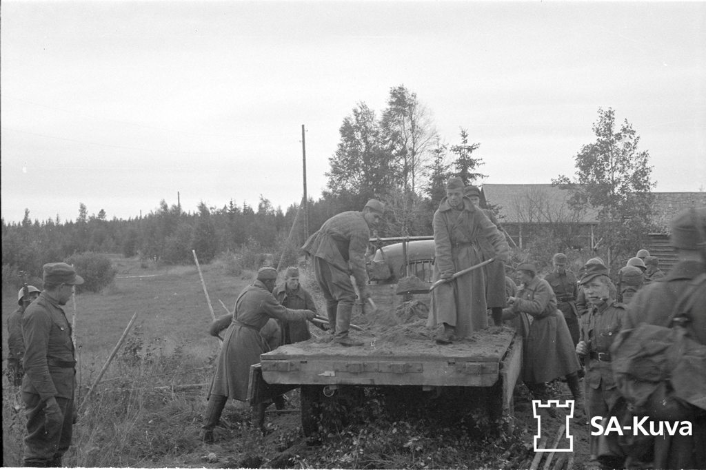 Советские пленные на ремонте дороги в Тапкина. Охранников - больше, чем охраняемых. Или просто засняться захотелось?