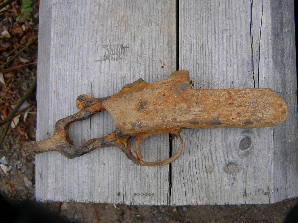 Прокатились в районе Хартонен.Вот нашел фрагмент охотничьего ружья.интересно будет посмотреть клеймо-когда очищу.Кто-нибудь знает что за фирма?На вид может быть...