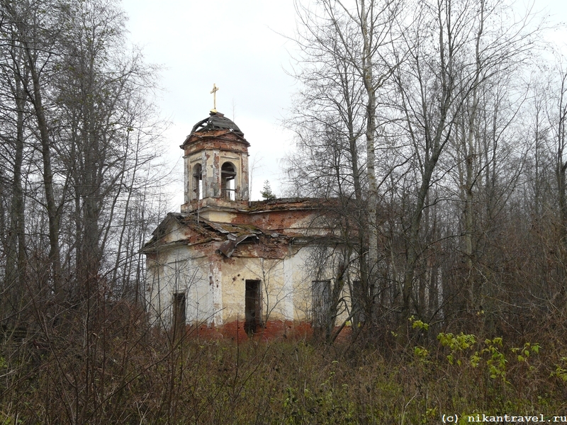 В войну в церкви находилась ремонтная база, где починяли машины, работавшие на Дороге жизни. Слава Богу, уцелела во все лихие времена, но заброшена.