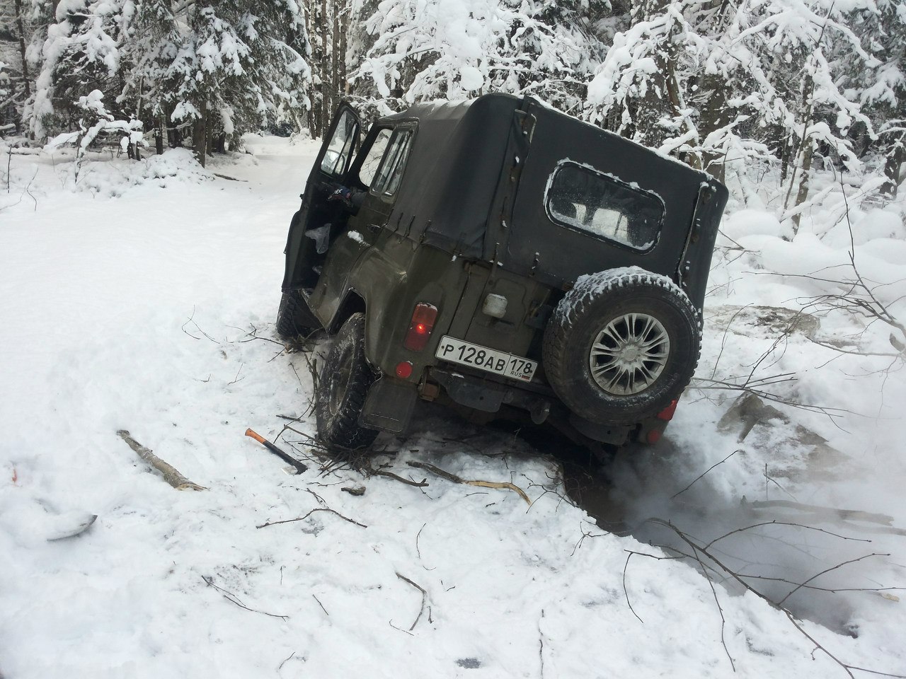 Добрый вечер всем уважаемым форумчанам! Давно изучаю данный сайт - очень интересно, спасибо его создателям и участникам! Сегодня совершили попытку добраться до озера Лампиярви по обычной дороге от Пасторского озера на УАЗе. Наивно предполагали, что грязь и лужи замерзли и мы без собых проблем наконец посетим это место. Тем более, что у нас теперь есть УАЗ. В итоге не добрались - очередная замерзшая лужа не выдержала веса машины, что привело к погружению правым бортом по порог в колею. А левый борт беспомощно буксовал на льду. Выкапывались около 2 часов. В итоге жена сказала, что не готова пробовать форсировать следующую лужу (ездили с ребенком) и мы повернули вспять, заехав позагорать на Глухое озеро. Рекомендую всем, кто, подобно нам хочет попасть на Лампиярви на машине, воспользовавшись морозом, не лезть туда без машины поддержки или хотя бы хайджека. На больших лужах лед около 6 см, а под ним - пустота.