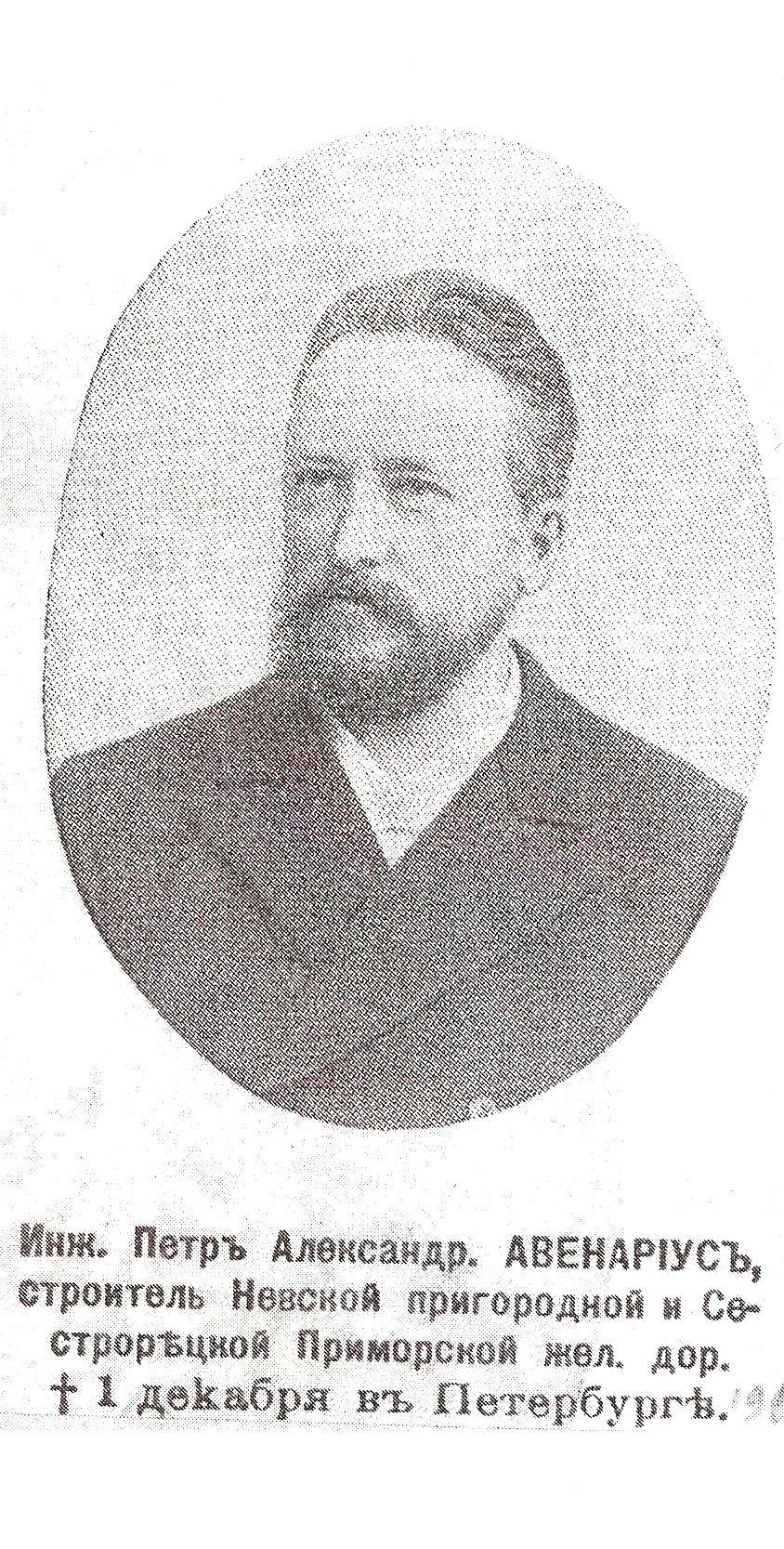 "Вчера, в 6 часов утра, скончался в Петербурге, в квартире сына своего, №28 по Литейному проспекту, тайный советник, инженер Петр Александрович Авенариус, 66 лет.