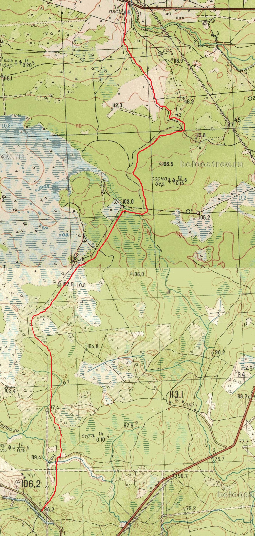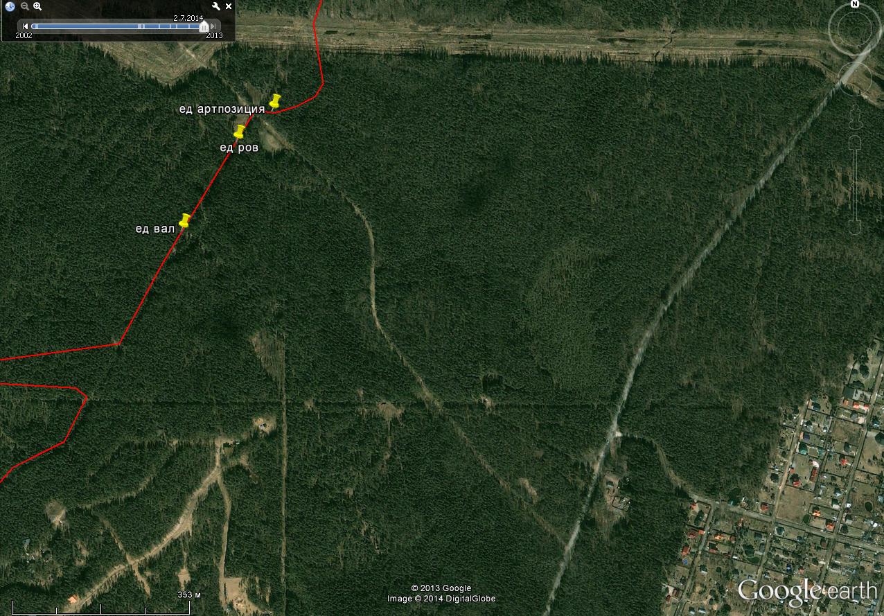 . Красная линия уходит вверх за срез снимка - это и есть начало старой елизаветинской дороги от газопровода.