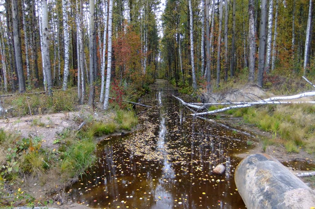 В месте пересечения с технологической дорогой ров засыпан, проложена труба.