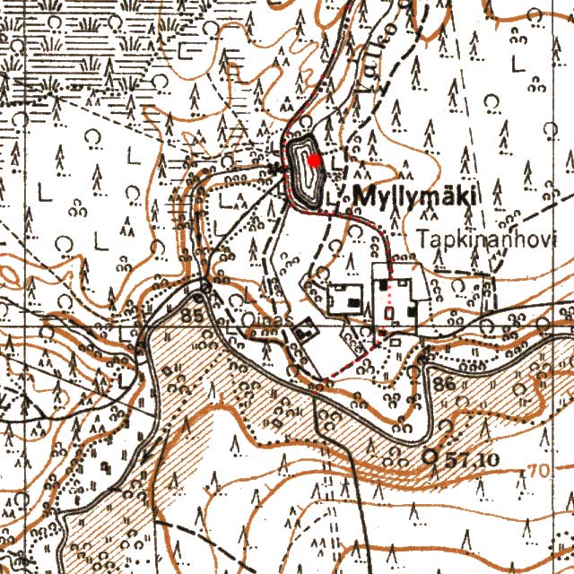 Судя по карте, юго-западнее Tapkinanhovi, вниз по Сестре, существовало крупное поселение Mustapohja. По Гуглу, вроде-бы как раз почти через него сейчас проходит ЛЭП. Тут: http://www.joutselka.net/kylat/kylat_as ... kartta.htm схема посёлка.
