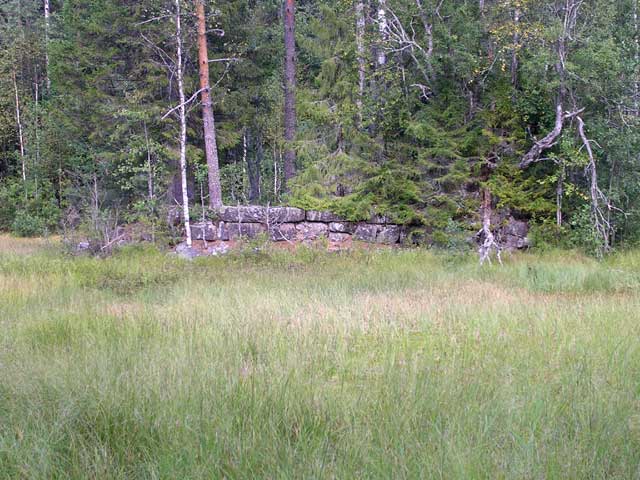 Ниже по течению ручья от дороги находятся остатки стенок из тесанного гранита, ...
