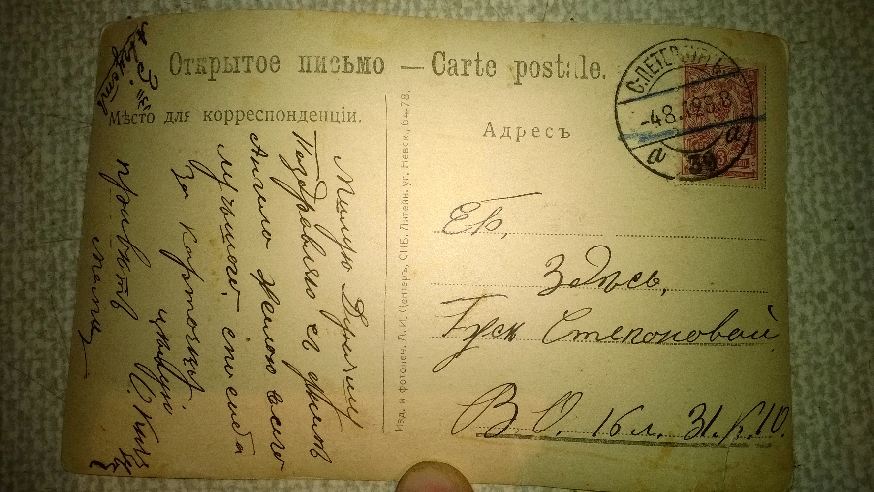 Хон с 38 писал(а):1913 - это мое предположение, из-за "специфического" написания даты отправителем. Могу отсканировать другую сторону, но не раньше понедельника.