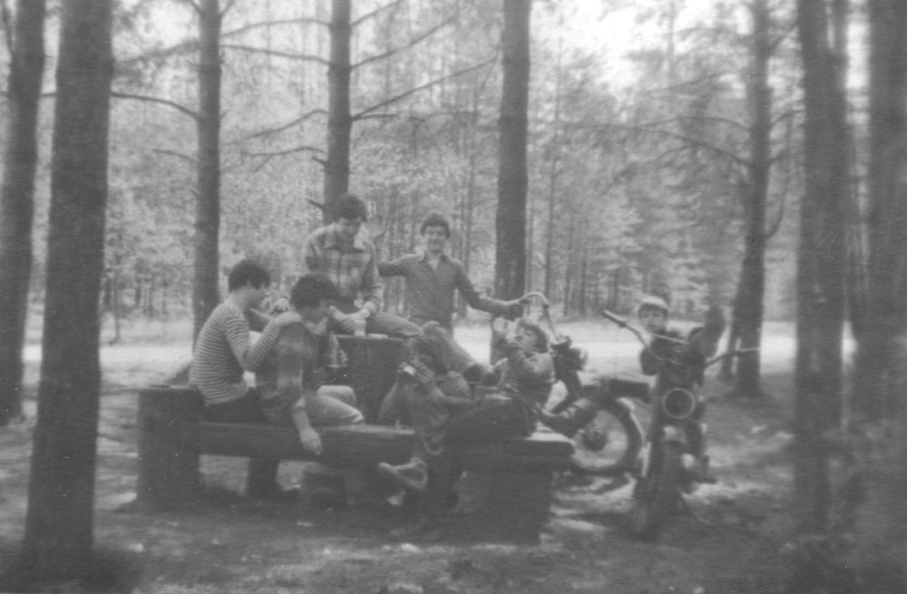 Было удобно сидеть на этих пеньках и устраивать заезды на скорость на мотопедах по прямому участку этой дороги.