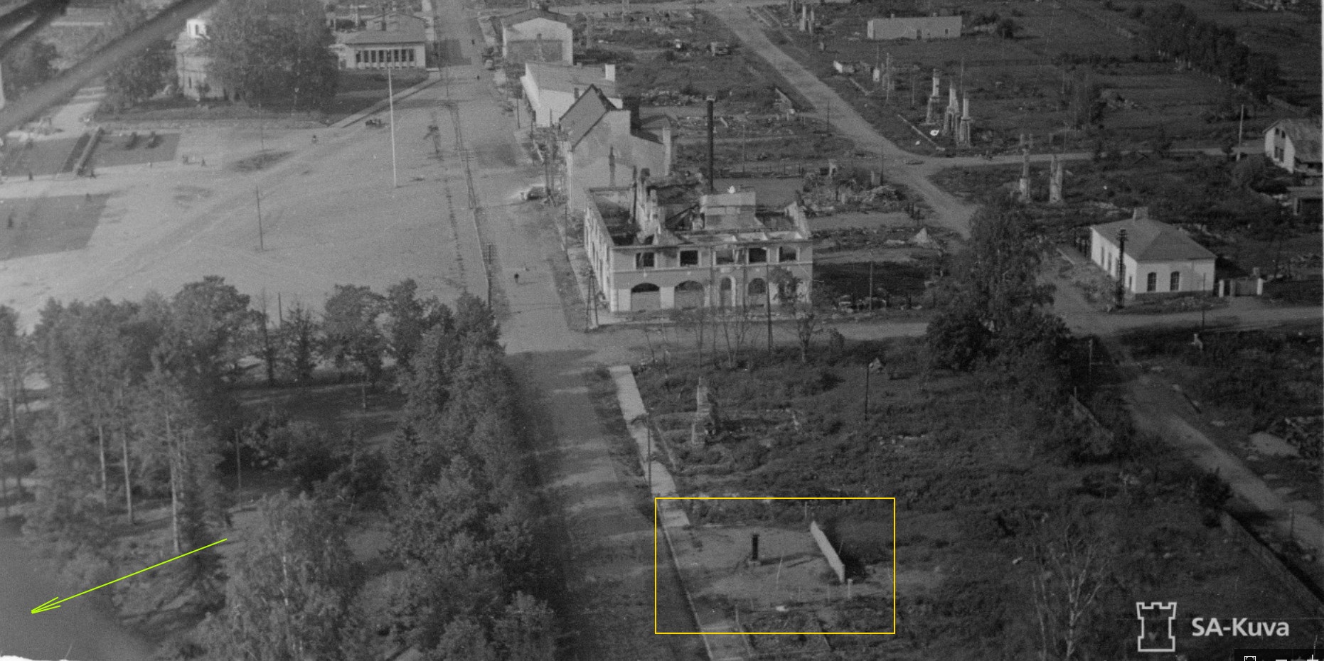 По поводу Багиры просто некое наблюдение. На фото дальше за дорогой (Ленина) виден заборчик. Там теперь здание школы и весь этот квартал естественно под нужды школы формировали. Там была какая-то стела финская черного цвета (видна на аэрофото 108238) и плиты на ее заднем фоне. Понятно, что в процессе строительства школы стелу снесли ( а мб и раньше)