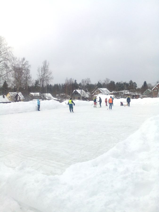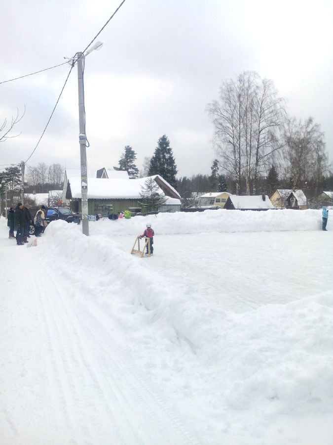 Площадка чистится,народ со всей округи приезжает.А вечером фонарь светит и народ просто на коньках катается.Я такого очень давно не видел...