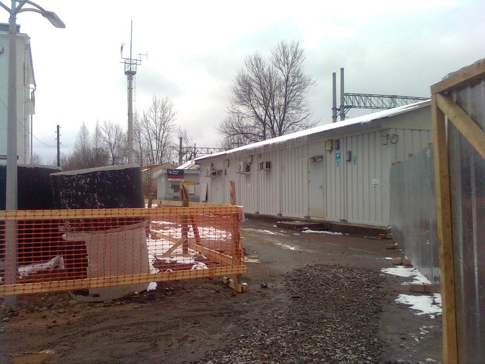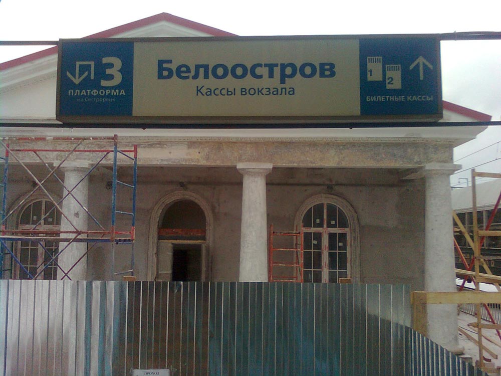 Отвечаю по порядку. На вокзале зимой работы не велись. Проблемы были с подрядчиком и РЖД. Сейчас все идет достаточно быстрыми темпами. Однако конца этому не видно. Касса будет летом работать в отдельном вагончике. Дальше, похоже, не думали. Но есть и хорошая новость. Внимание! На станции Белоостров будет теплый туалет высшего качества. Кто знает, это старое здание рядом.