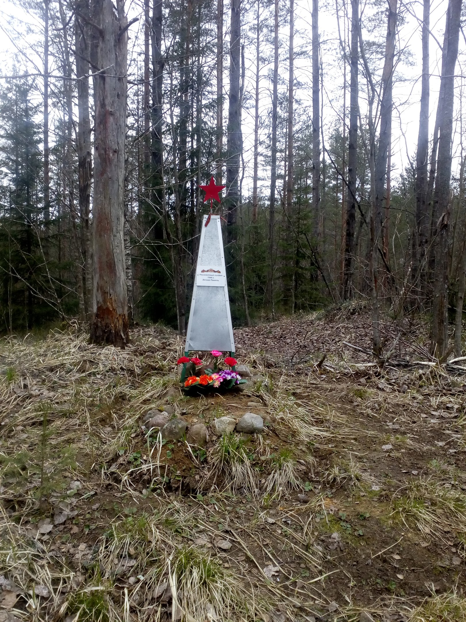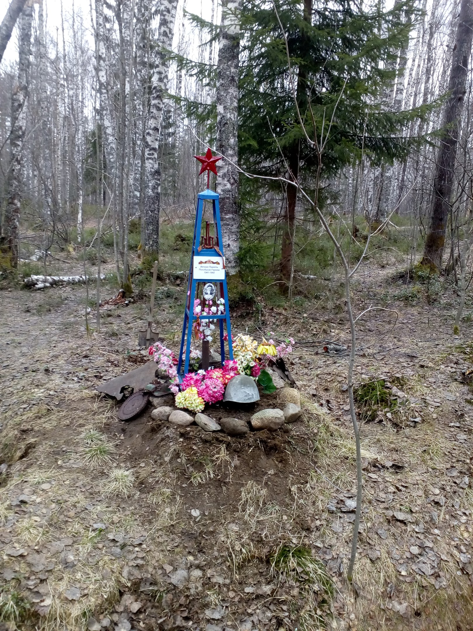 Уже 9 мая сходил на могилу двух неизвестных бойцов, что находится на ЛЭП. Олег рассказывал, что ее раскурочили трактором. Точно так. Могилы вывернуты наизнанку прошедшим трактором. Он прошел прямо по ним. Или кабель там прокладывали, или еще что, но вид теперь там такой. Опять писать в Юкковскую администрацию что ли? Чтобы наказали участников всего этого. Между прочим, за это полагается 244 статья УК.