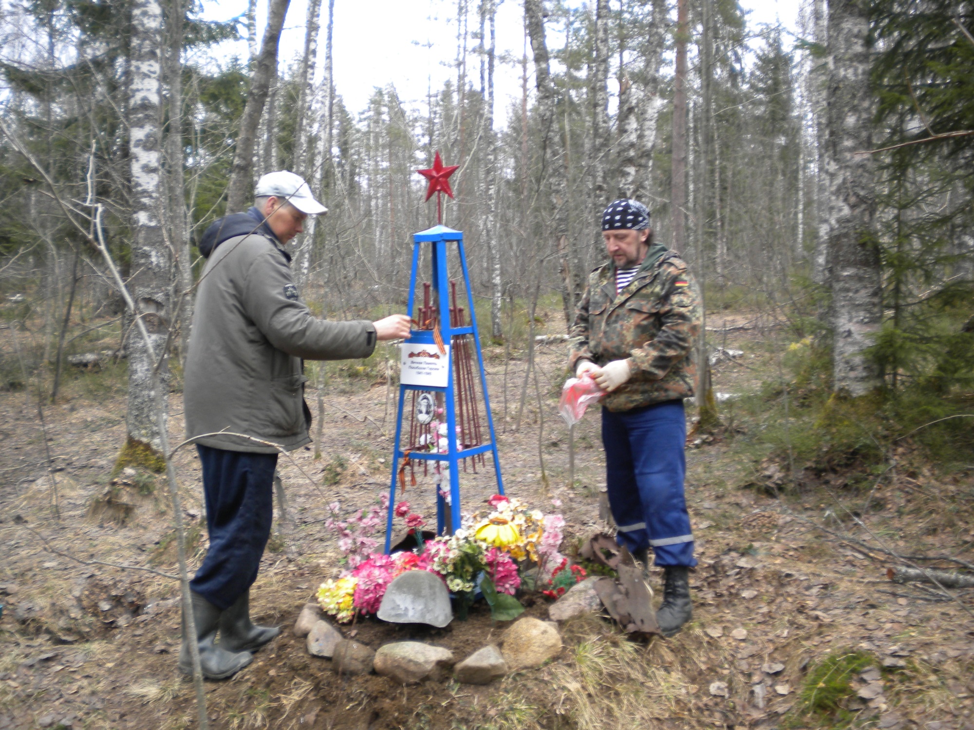 А вообще,хотелось бы сказать.Это так приятно,пообщаться с интересными,неординарными людьми-в реале,не в сети.Это совсем другое дело.Да еще и заняться вместе полезными работами.Очень бы хотелось мне пообщаться и с Хон 38,и с гоподином Рыбак,ом да и с DELTA,которые поначалу изъявили желание составить компанию по уборке лесных захоронений.Но видимо-дачные дела замучили.Поверьте моя жена легко отпустила меня с дачных работ на благородное дело-убрать могилы героев...