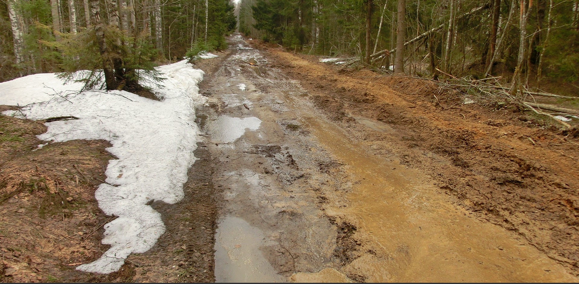 Льда еще много на дороге, с глубокой талой колеейLYNX писал(а): ↑10 май 2017 16:30Дальше через газопровод дорога ничего себе, и в горку за ним нормально. Но вот на спуске ждала засада из упавшей поперек березы