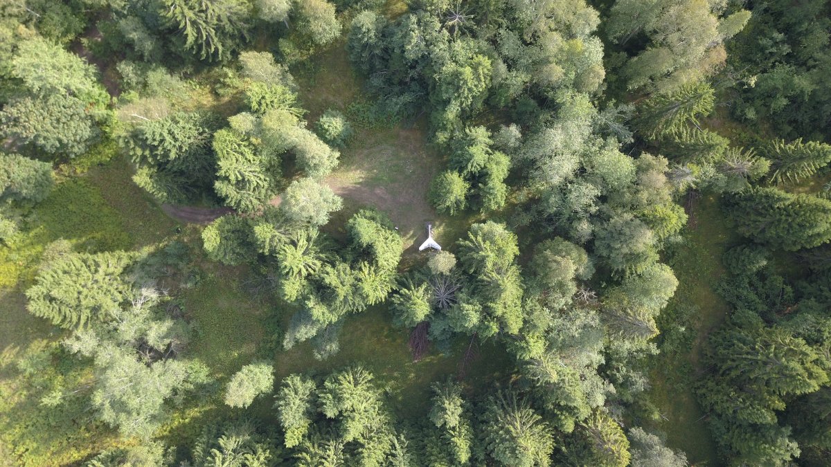 Вернулся только что с Люблинского озера. По пути полетал над просекой от падения самолёта.