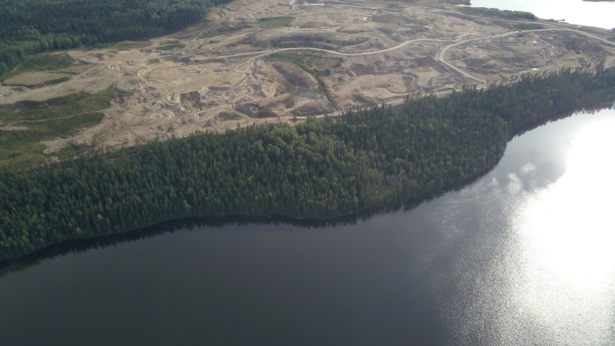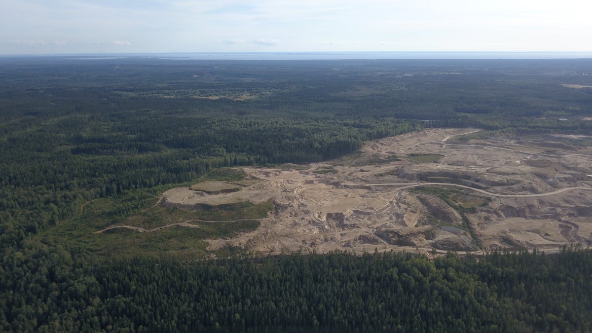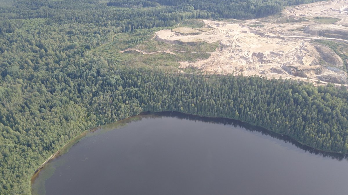 Покатались с соседями на УАЗе до Люблинского озера, Карьер растет и ширится, уже намечены новые территории и выпилен лес. Стоя на берегу озера, видно, что отвал на противоположной стороне уже выше сосен.